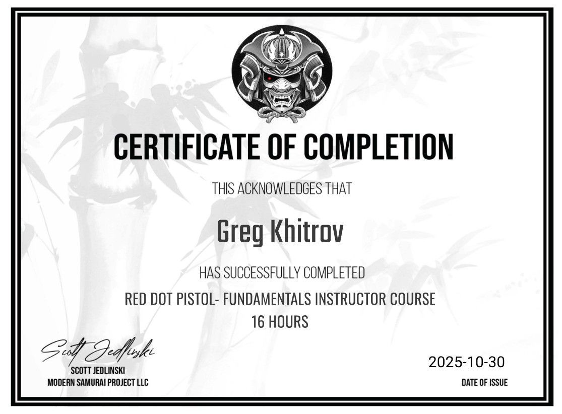 This course didn’t just change my optics philosophy — it changed how I run a pistol altogether. Scott’s emphasis on grip pressure, support-hand placement, and presentation made me realize that most of my prior shooting inefficiency came from technique, not equipment.
